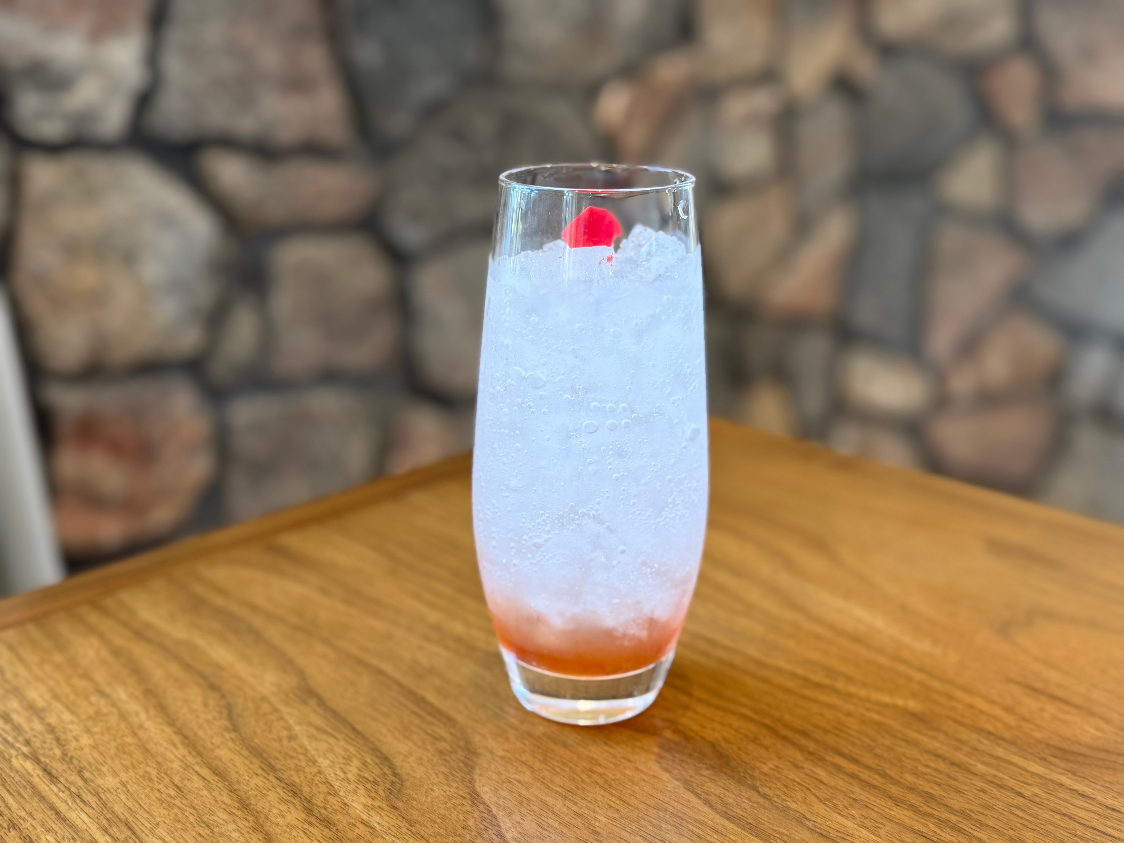 ➀商品内容 ローズソーダに鮮やかなピンク色のバラソフトをのせたバラを満喫できるフロートです。