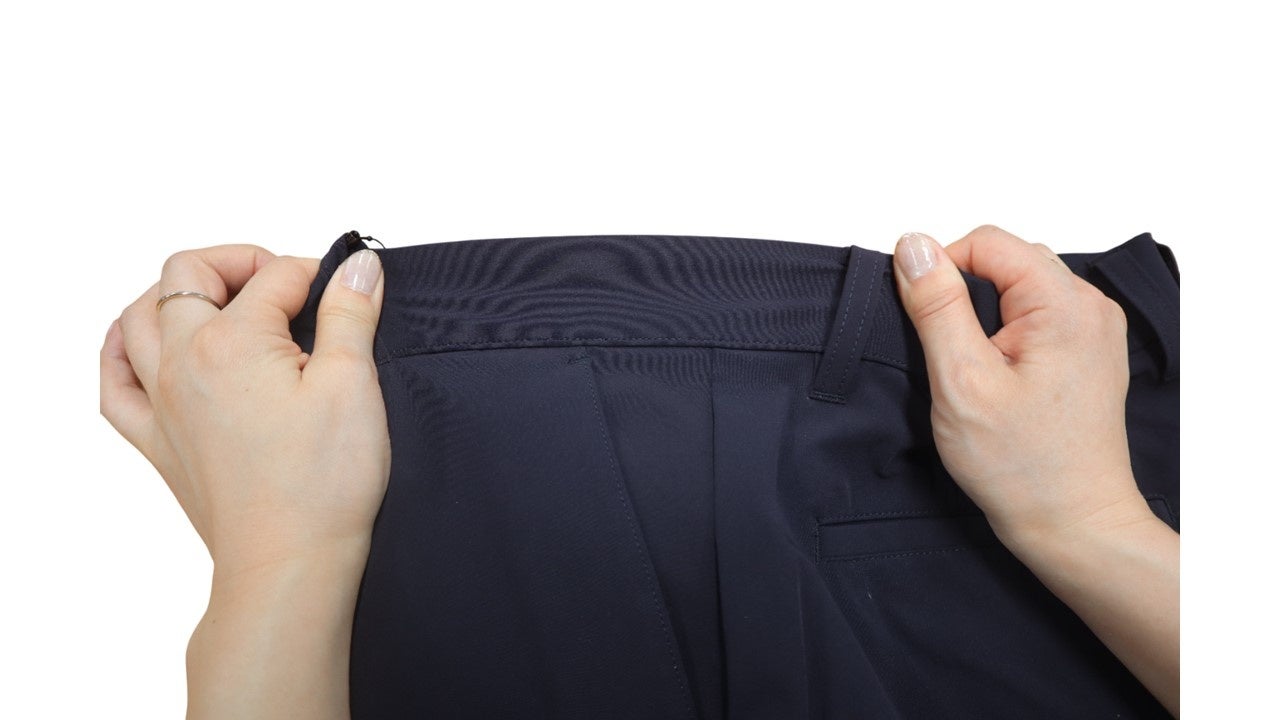 今回の発売するセットアップの生地は、縦方向に約30%、横方向に約25%伸びるスポーツウエアに使用されるほどのストレッチ性と、汗を素早く吸収し生地表面へ移動・拡散する優れた吸汗速乾性が特長です。ジャケットは、機能性素材でありながらもビジネスシーンを想定し、ハリのある生地を採用したことに加え、胸ポケットやフラップポケットを設計することできちんと感を演出しています。パンツは、前回同様ウエストをゴム設計にし、座った時の圧迫感を軽減。股下部分にはひし型状のマチを作り生地が突っ張らないガゼットクロッチ仕様にするなど、スポーツ機能とビジネスを融合した商品となっています。
