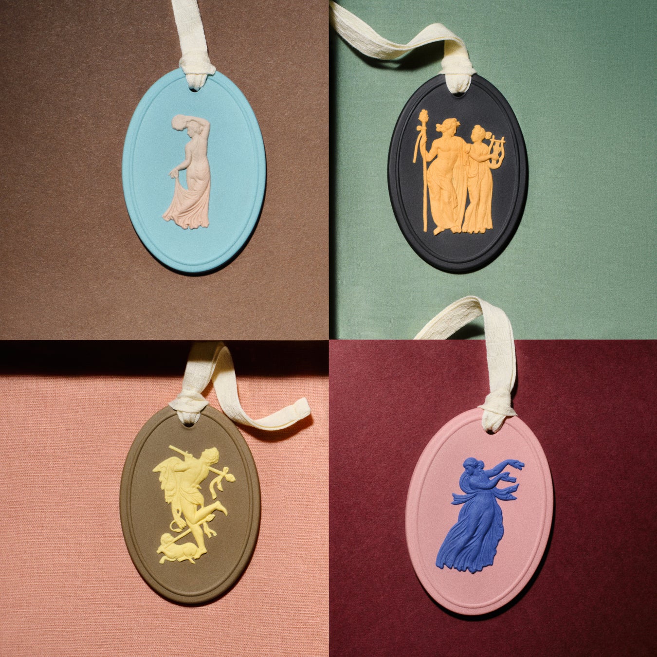 ジャスパーのホリデイオーナメントは、芸術的で伝統を感じられる特別なアイテムです。4種のオーナメントには、ギリシャ・ローマ神話に登場するワイン、農業、豊穣の神バッカスの神話にちなんだデザインで、各色ごとに異なるレリーフがあしらわれています。鮮やかな配色が目を惹くクラシックモダンなオーナメントは、ジョサイア・ウェッジウッドの代表作であり2世紀以上にわたってブランドの象徴となってきた素材、ジャスパーで作られました。 時代を超えて継承されてきた技術を用いて、英国バーラストン工場にて、クラフトマンの手作業でひとつひとつ丁寧に仕上げられています。仕上げにはジャカードリボンが使われており、記念品や贈り物としても最適です。時代を超えて愛されるデザインで、ジャスパーコレクターはもちろん、新しいファンにも喜ばれることでしょう。(数量限定・各税込 15,400円)