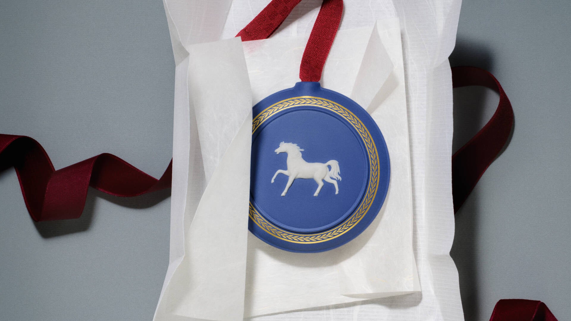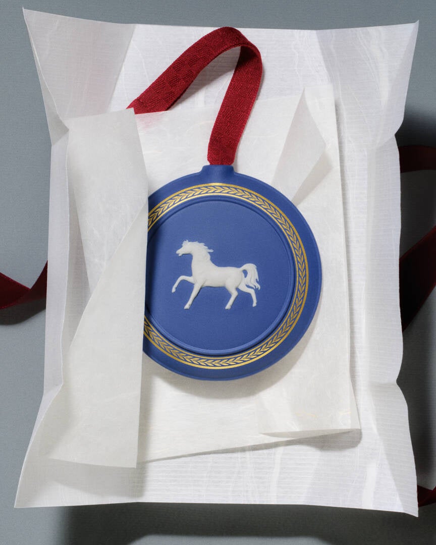 ジャスパーのオーナメントには、日本では公式オンラインストア限定発売のオーナメントも登場しました。「ホリデイオーナメント ニューベイビー 2025」は、小さな子供たちが遊ぶ姿が微笑ましい繊細なレリーフで、お子様の誕生を祝福する想いを込めてウェッジウッドのアーカイブデザインから選ばれたものです。裏面には年号の2025のレリーフがあしらわれており、今年誕生したお子様の記念に最適のデザインです。「ホリデイオーナメント(ジャスパー) エト オーナメント ウマ 2026」は、2026年の干支である馬をモチーフに、金色の装飾が施されたオーナメントです。裏面には年号の2026のレリーフがあしらわれています。颯爽と駆ける姿が美しい馬のレリーフは、ウェッジウッドのアーカイブデザインから選ばれました。「ホリデイオーナメント キューピッド」は、弓矢を手にした姿のレリーフはいつの時代もロマンスの象徴とされるキューピッドで、ウェッジウッドのアーカイブデザインから選ばれました。いずれも、英国のバーラストン工場で熟練のクラフトマンにより一つ一つ丁寧に手作業で仕上げられています。(数量限定・各税込30,800円)