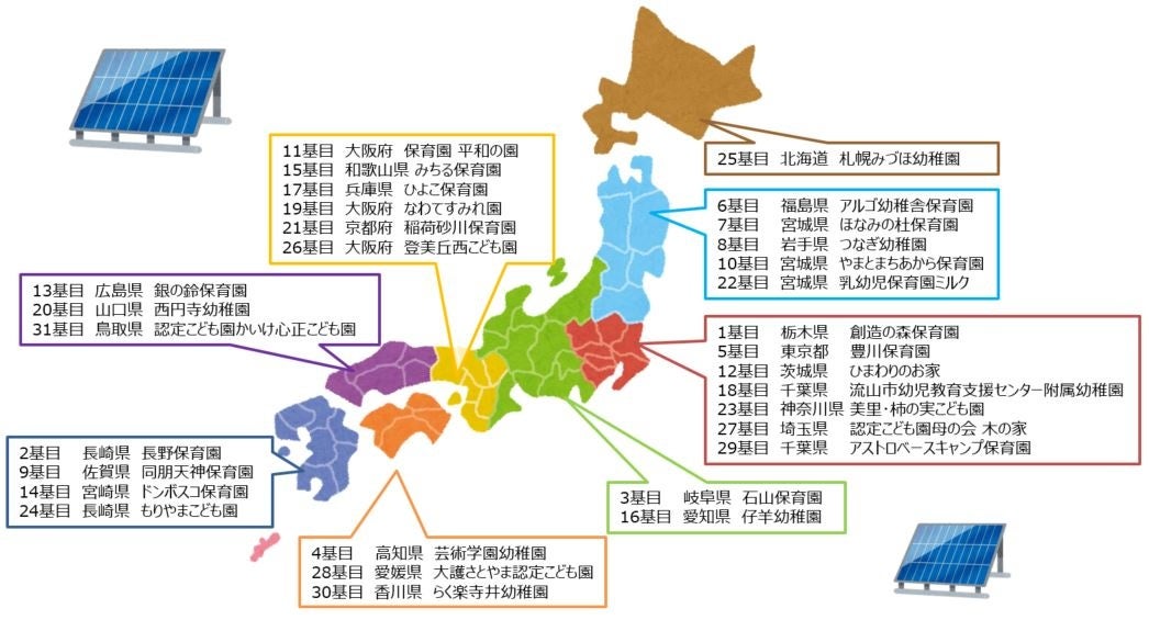 ソニー損保では、これまでに合計31基の「そらべあ発電所」を全国の幼稚園・保育園・こども園に寄贈・設置しました。