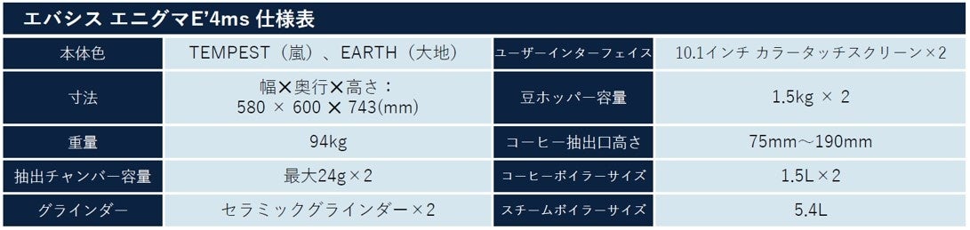 エバシスのハイエンドモデル。1時間に350杯のエスプレッソを抽出可能で、シリーズ最大の生産性を誇り、コーヒービジネスにおける費用効率アップに貢献します。お店のコンセプトや使用環境に合わせて選べる、2色のカラーバリエーションをご用意しています。