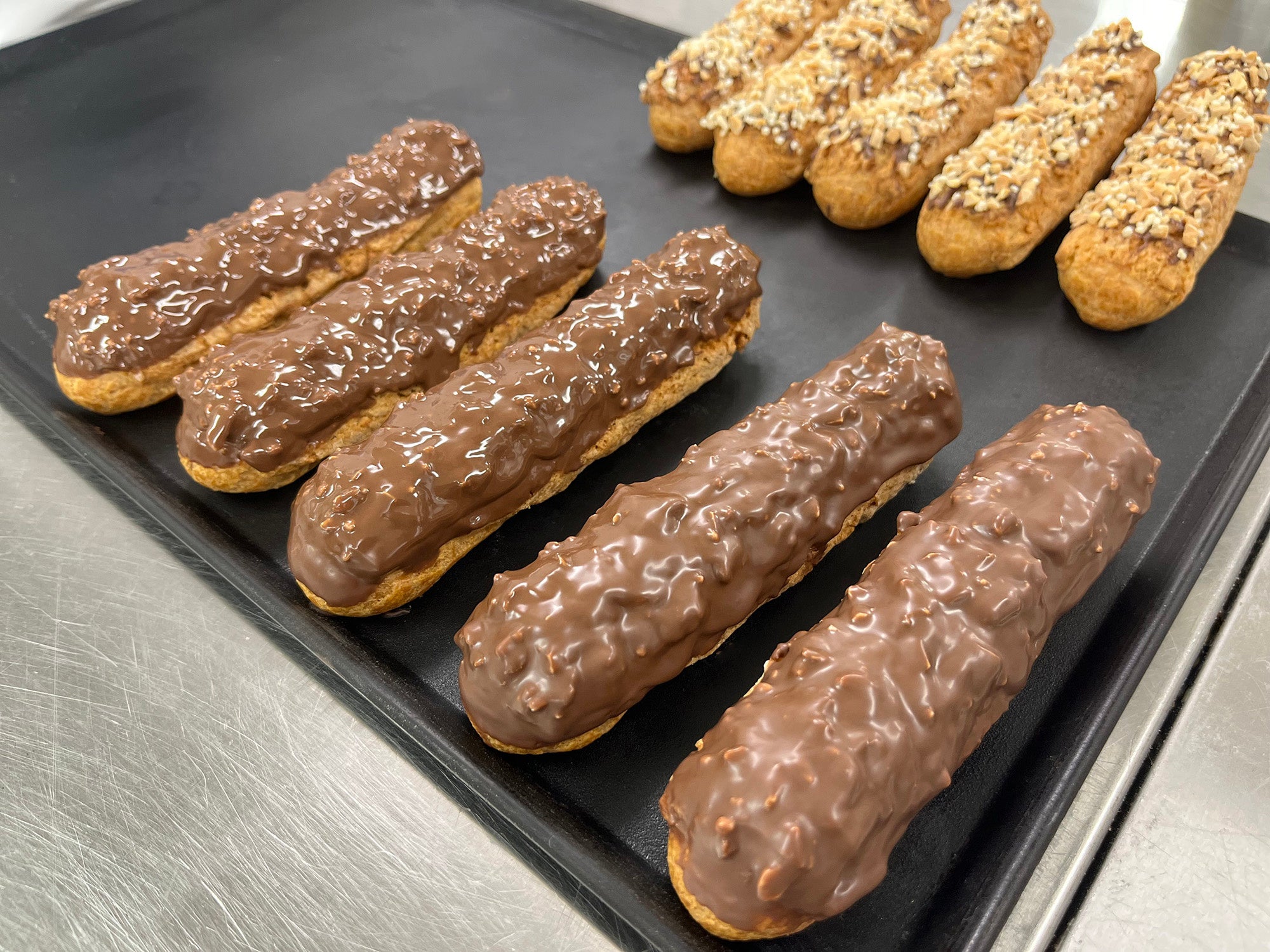 小枝のサクサク感とチョコレート、アーモンド、パフの絶妙な味わいを再現しました!サクサクとまらない、後引くおいしさのシュークリームです。