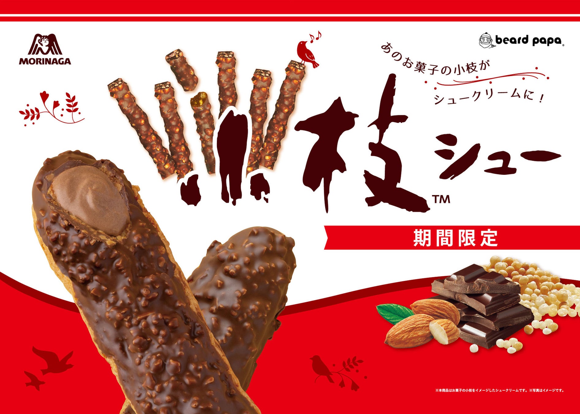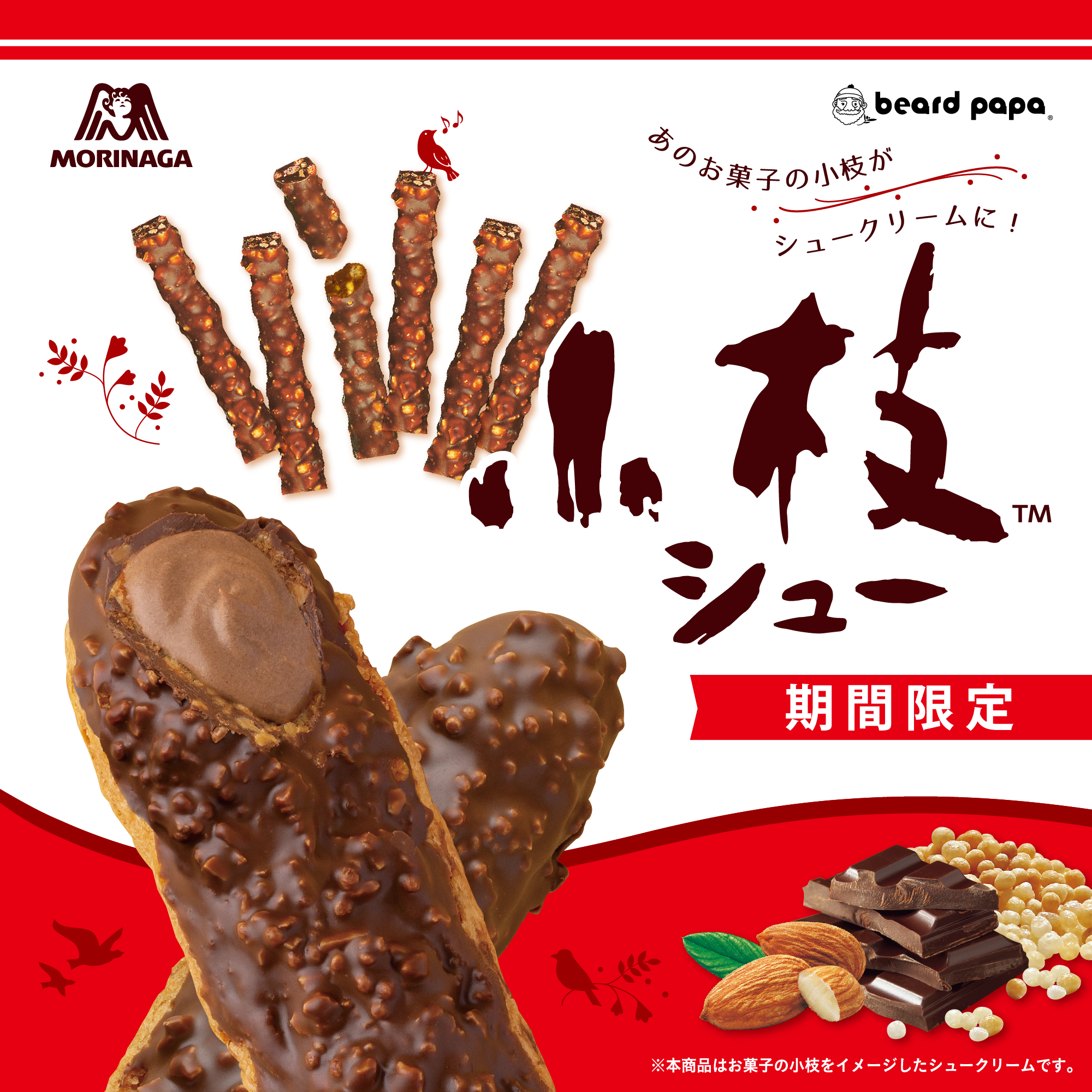 2019年に期間限定コラボとして誕生した“小枝シュー”は、あのお菓子の小枝でおなじみの「サクサクとまらない、後引くおいしさ」とその「見た目の再現度」が話題となり、これまでの累計販売数は650万個を突破。お客様にご愛顧いただき、このたび発売5周年を迎えることとなりました。
