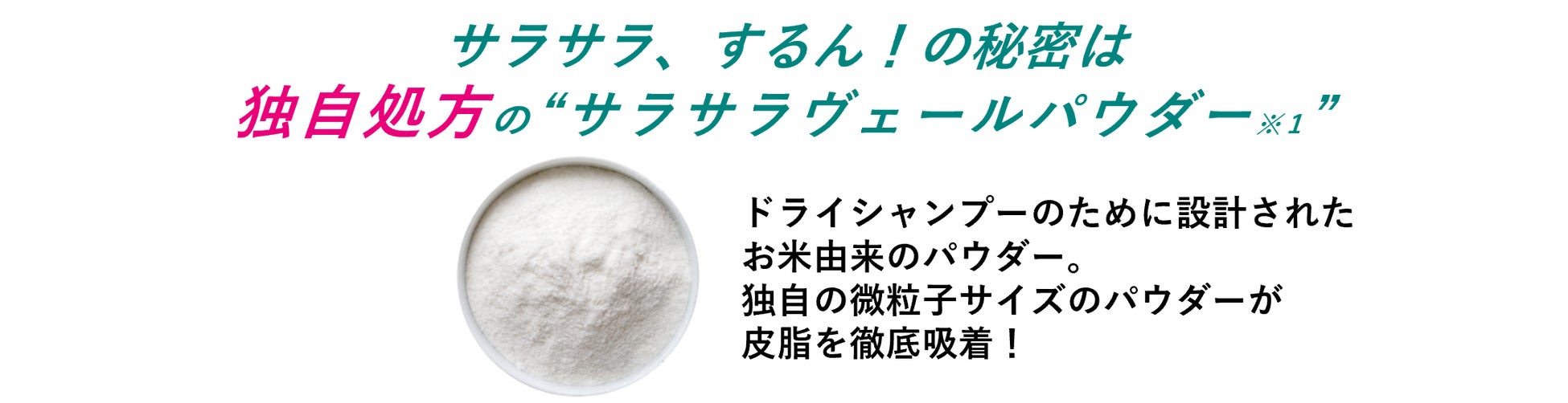 独自のサラサラヴェールパウダー※1で気になる皮脂を徹底吸着、皮脂によるベタつきを抑え、憧れのサラ髪に。トリートメント成分※2でするんとまとまるやわらかな髪へ。