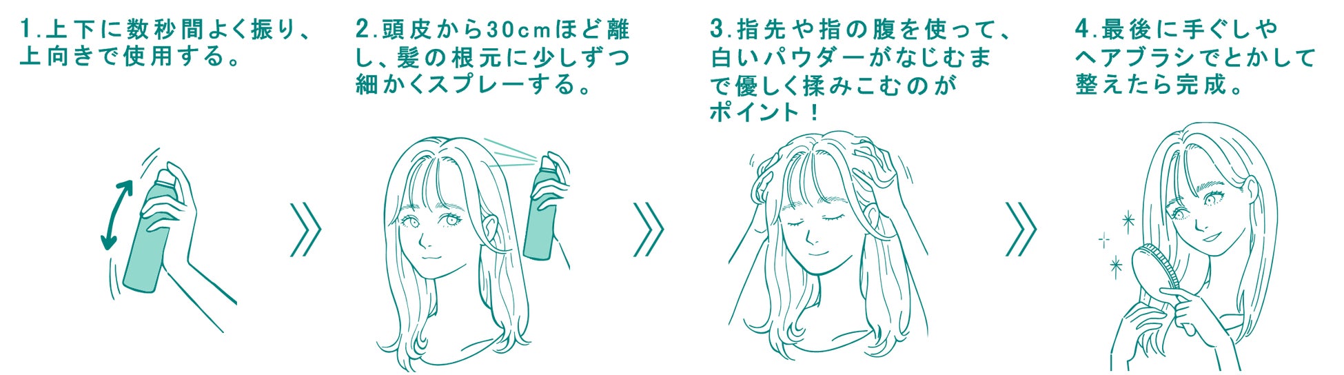 髪の根元や髪全体にスプレーすると、独自のサラサラヴェールパウダー※1が髪をサラサラにコーティング。驚くほどのサラサラ髪に仕上げます。