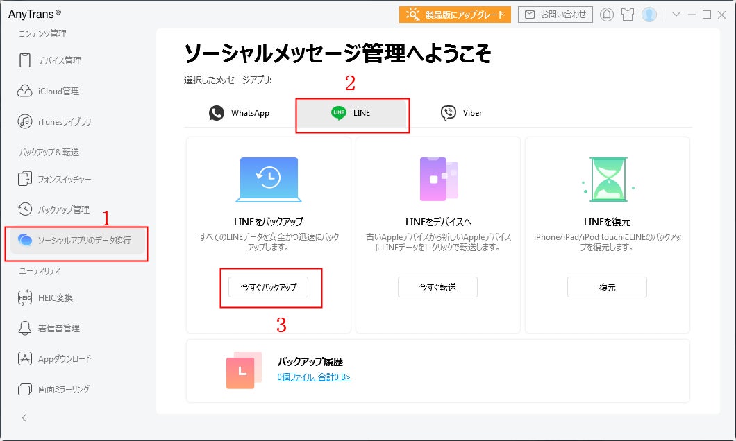また、バックアップにトラブルが生じる場合、バックアップを復元できないのみならず、さらにはデータ損失が発生する可能性があるため、AnyTransを利用して、LINEトーク履歴のバックアップと復元を行うと、より簡単かつ安全になります。