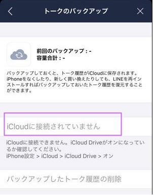 まず、iPhoneにLINEトーク履歴をバックアップしたかどうかをご確認ください。バックアップを取っていないLINEトーク履歴を復元できません。iPhoneの場合は、iCloud Driveがオンになっているか確認してみてください。そして、「LINEアプリ」の「トークのバックアップ」をタップし、バックアップが取れているが確認してみてください。