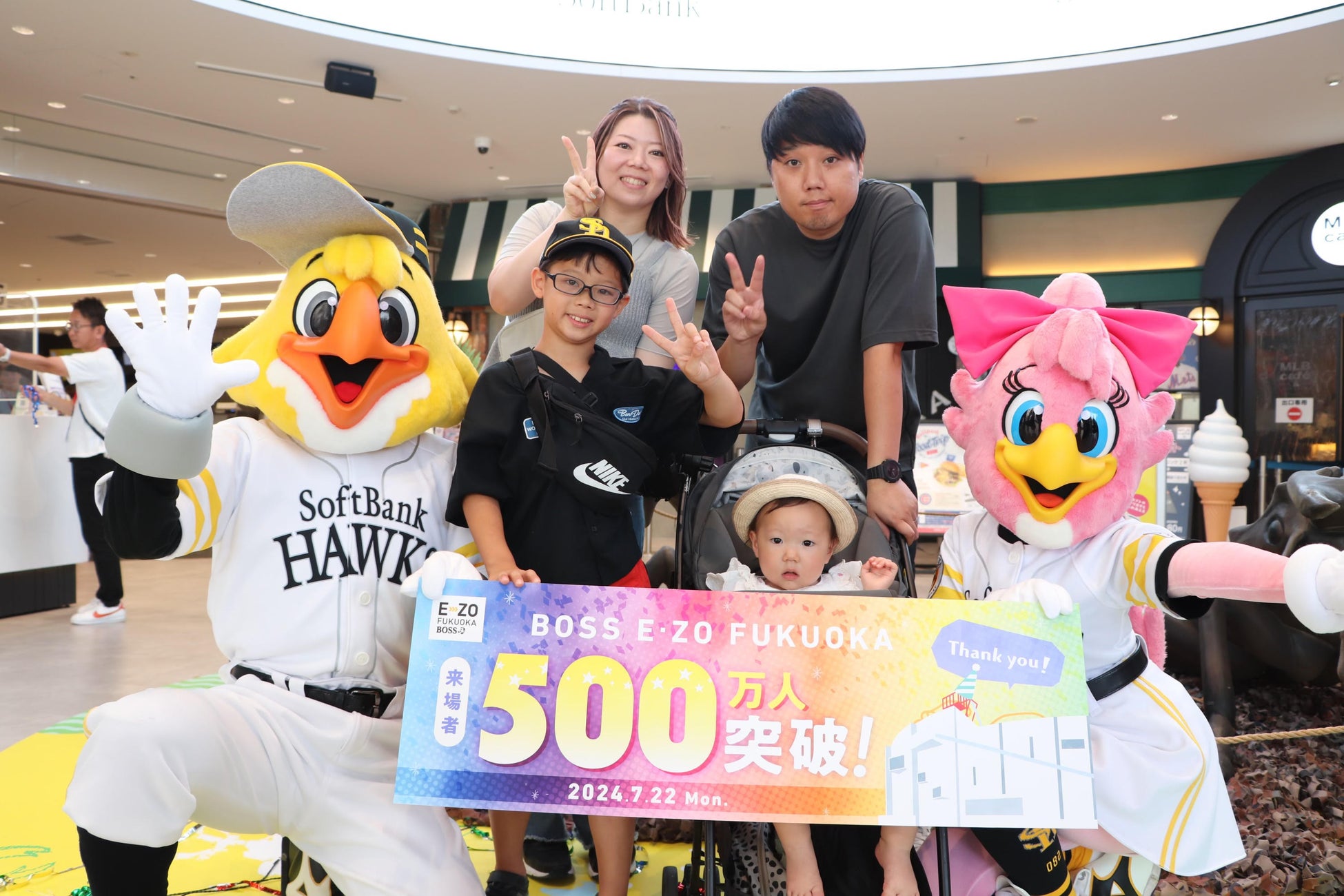 福岡ソフトバンクホークス株式会社(本社:福岡県福岡市 代表取締役社長CEO:後藤芳光)は、みずほPayPayドーム福岡隣の複合エンターテインメントビル「BOSS E・ZO FUKUOKA」が、累計来場者数500万人を突破し、記念セレモニーを行いましたのでお知らせします。