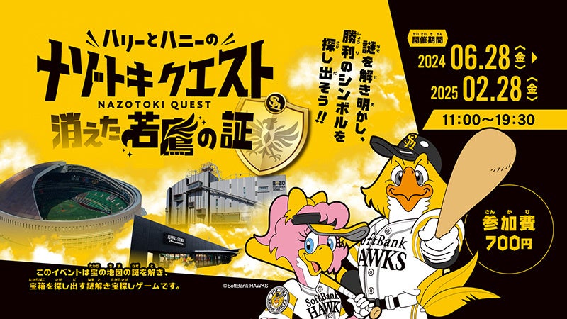 E・ZOとみずほPayPayドームを舞台とした謎解きイベント「ハリーとハニーのナゾトキクエスト 消えた若鷹の証」が特別価格500円(通常700円)消えた若鷹の証をめぐる謎解きにチャレンジしよう!