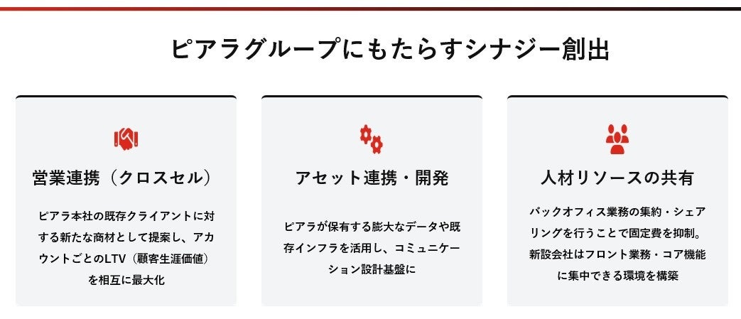 今後は、ピアラグループが有するデータ・基盤・マーケティング支援機能と、A Better Caseが担うブランドコミュニケーション設計、クリエイティブチームの組成機能を掛け合わせることで、企画・制作、認知形成、獲得、LTV向上までを一気通貫で支援する体制を強化してまいります。ブランドをつくることと、成果をつくること。その両方に本気で向き合いながら、ピアラグループはこれからも「よいほうへ。」進んでまいります。