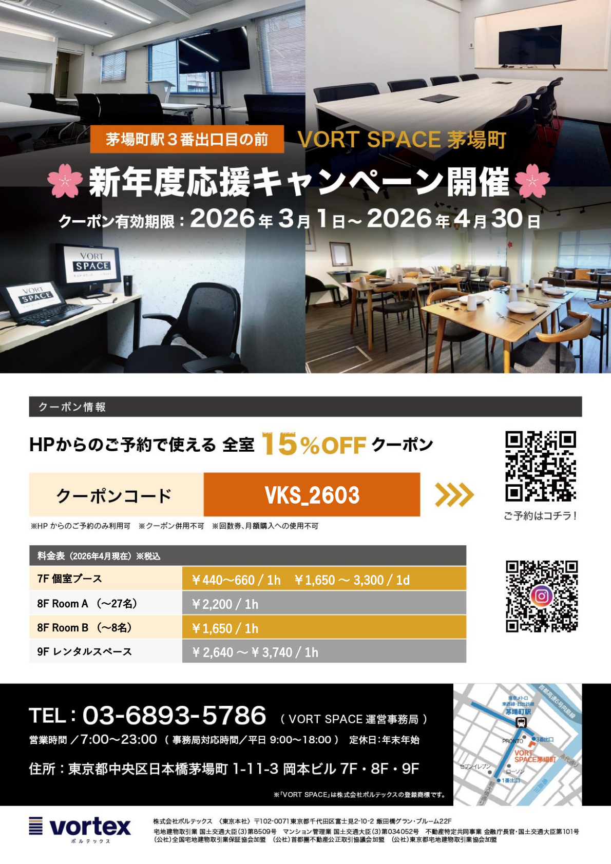 【参考情報】VORT SPACE 茅場町における新年度応援キャンペーンについて