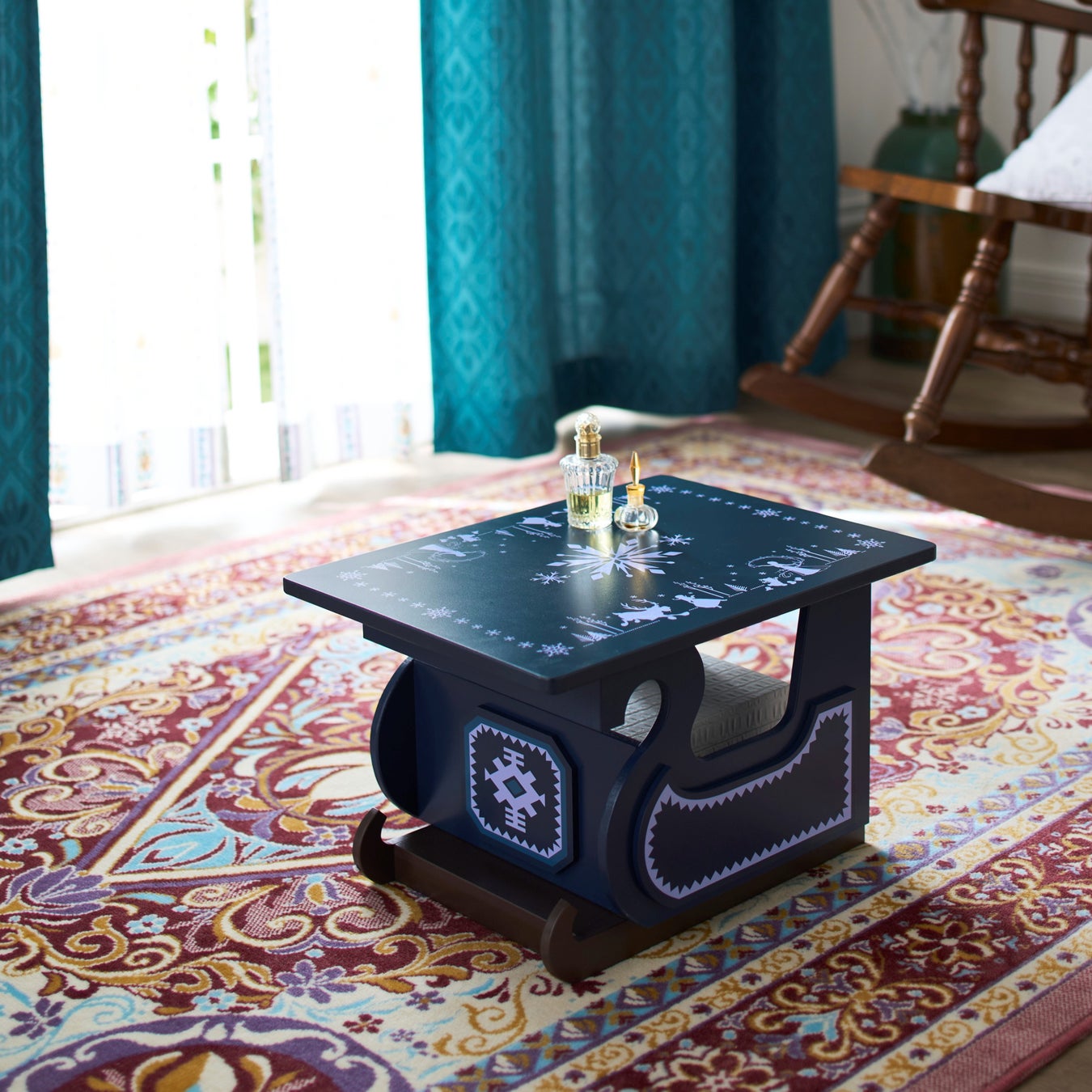 ラインアップは計8アイテムで、「ステンドグラスのようなボイルレースカーテン」(税込:7,990円~)、「かぼちゃの馬車柄のラグ」「広場をイメージしたタイル柄ラグ」(共に税込:12,900円)、「キャラクターイメージのミニテーブル」※(税込:16,900円)を1月7日に、「アートフレームのミラー」(税込:7,480円)、「フリルが華やかな布団カバー」(税込:5,990円~)、「フリルが華やかな布団カバー3点セット」(税込:10,990円~)、「ドレス風布団収納ケース」(税込:3,990円)を1月31日に販売開始します。