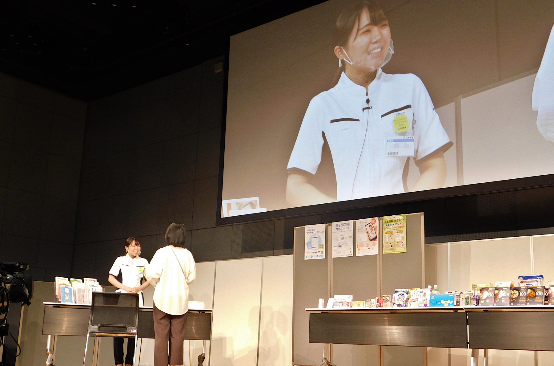 今年度のロールプレイ大賞のテーマは「絆を深める、未来につながる~丁寧に、一生懸命に、温かさを届ける~」。舞台上に薬局店内を再現し、制限時間7分の中で、薬剤は服薬指導、オペレーター・管理栄養士は健康相談のロールプレイを行います。今年は全国の予選会を勝ち抜いた18名が「薬剤師部門」「オペレーター・管理栄養士部門」に分かれ、その応対スキルを競い合いました。