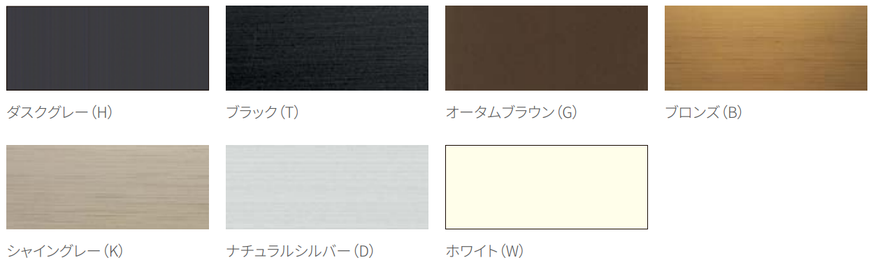 カラーは、好評のダスクグレー色などの7色展開。ダスクグレー色は、昨年よりLIXILが新たに展開した薄暮の時間帯をコンセプトにしたごくわずかに青みを感じる低彩度のカラーで、住宅に美しく馴染みます。形材のトップ層に高耐候型アクリル塗料を適用したテクスガードを採用することで、高い耐候性と耐食性で長期に渡り美しい風合いを維持します。TOSTEMのハイブリッド窓や窓シャッターと同色設定なので、外観のイメージを壊さない、統一的なコーディネートが可能。
