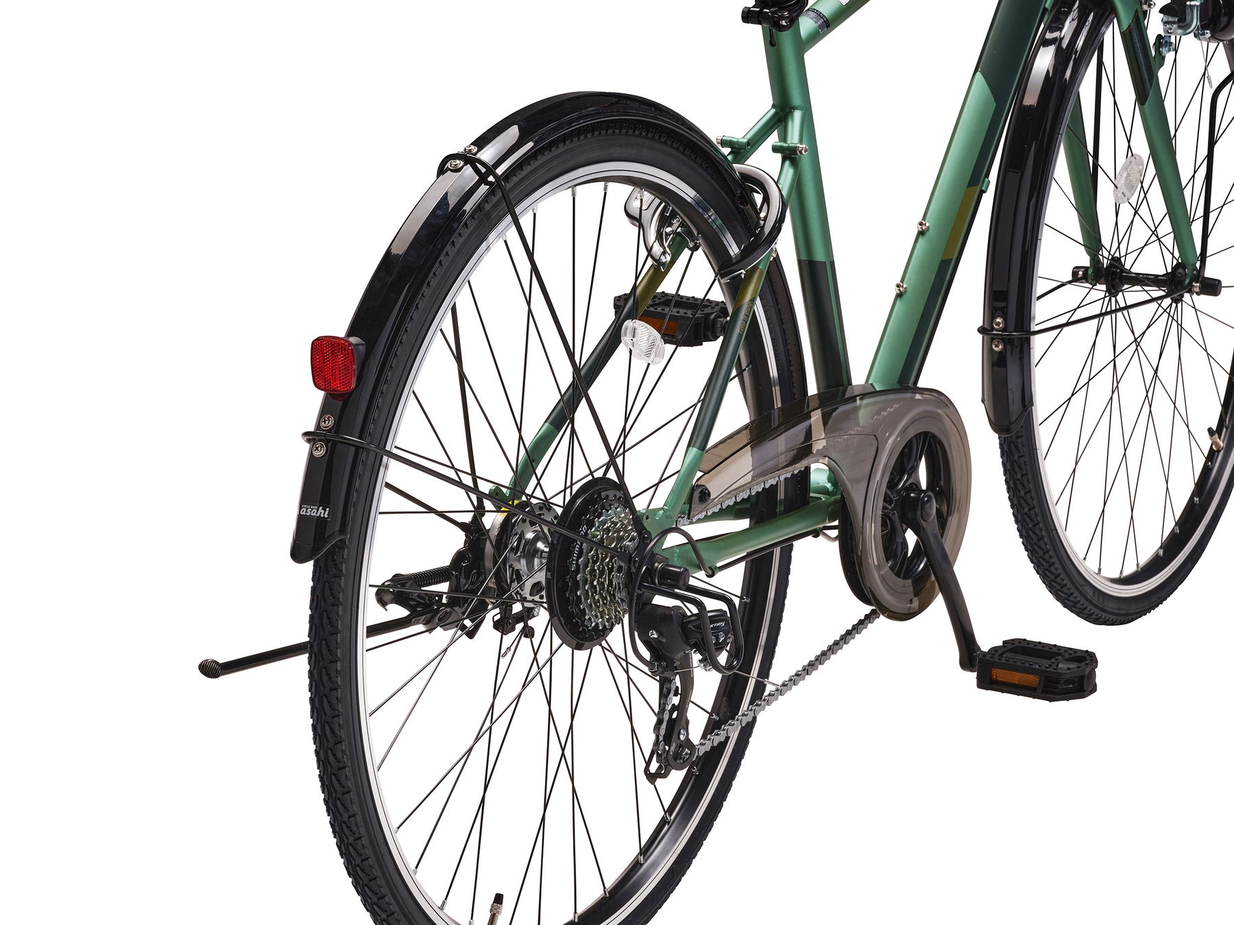ビジネススタイルに馴染むスポーティなフレームに、ブリーフケースや通勤リュックにも対応した幅と深さのあるバスケット、服の汚れを防ぐチェーンカバーと泥除け、革靴でも滑りにくいノンスリップペダル、暗い夜道を明るく照らすLEDライトを装備しています。デザインはスーツだけでなくカジュアルな服装にも似合うスタイルへとアップデートしました。
