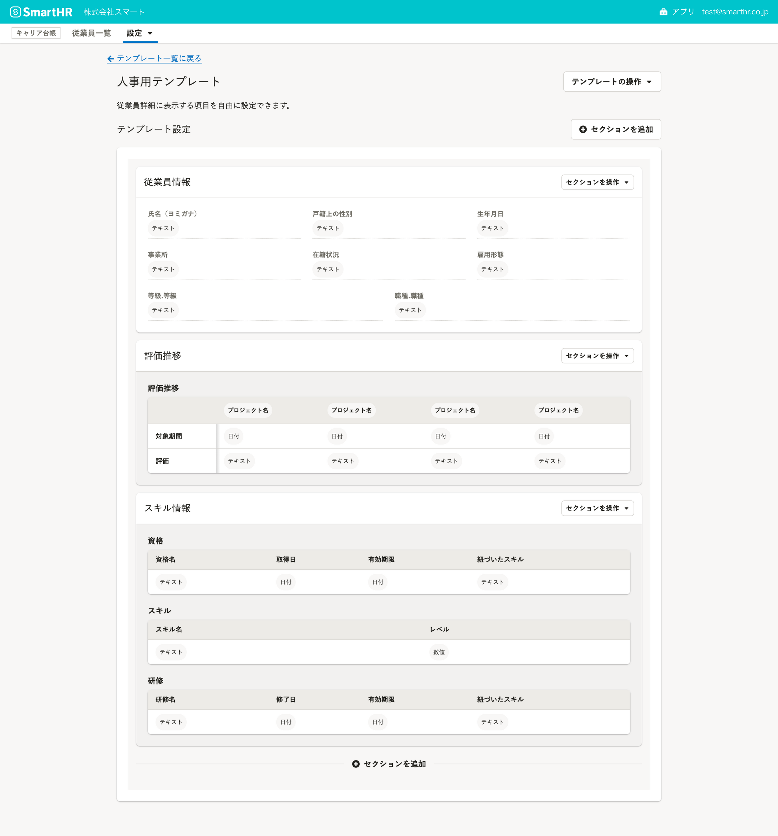 ・テンプレートに表示させる項目の編集はセクションで行えます