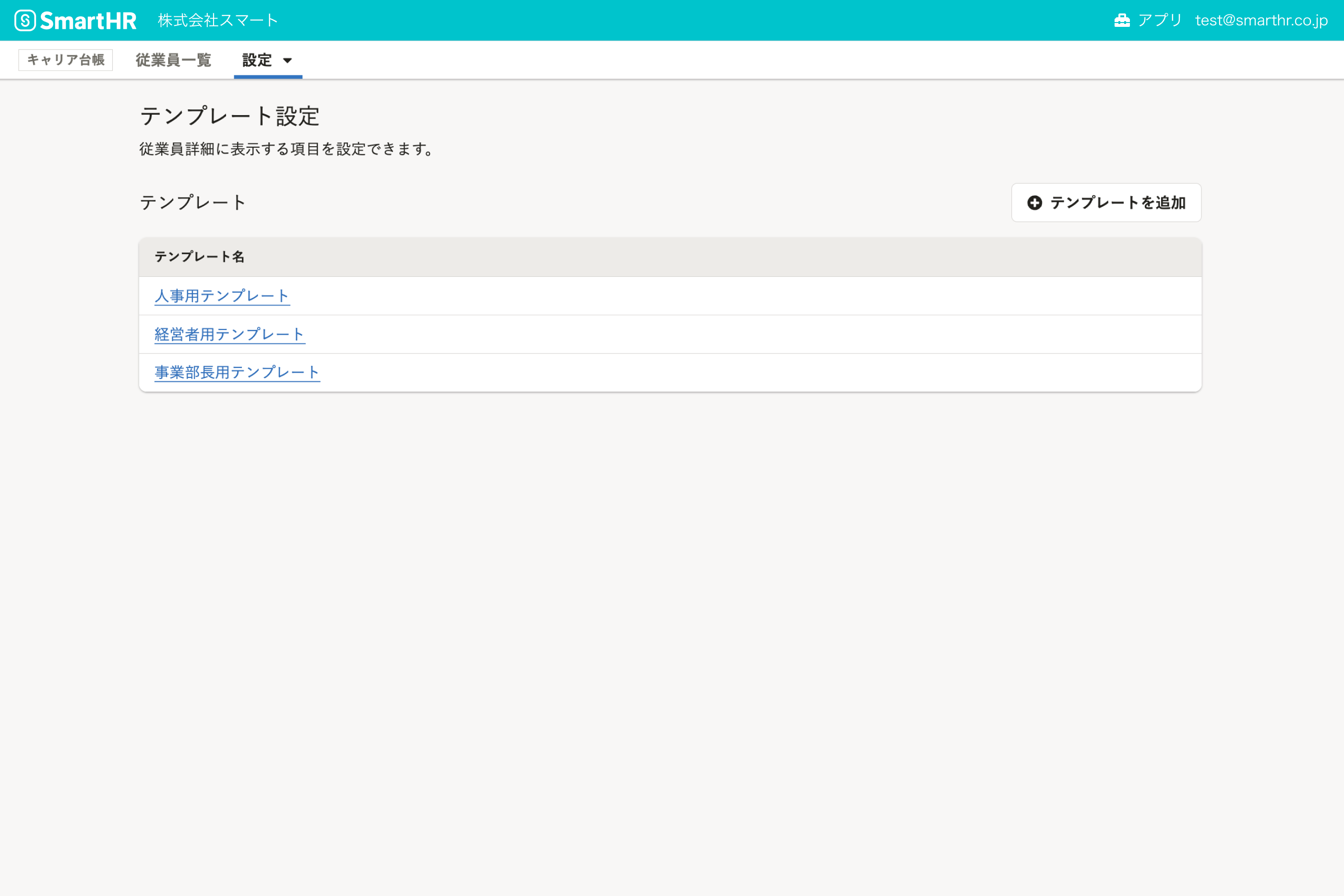 ・従業員情報で表示する項目はテンプレートから設定できます