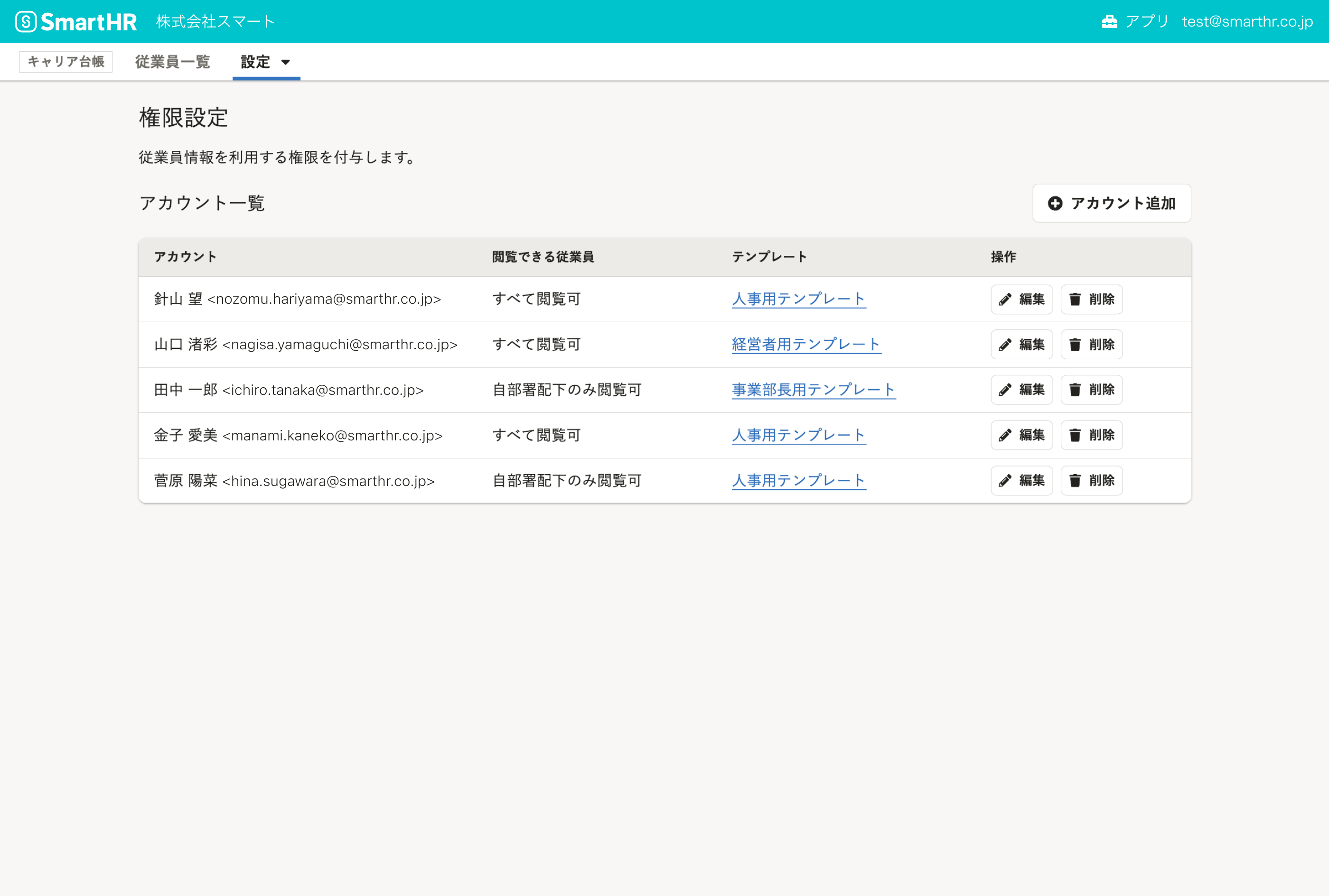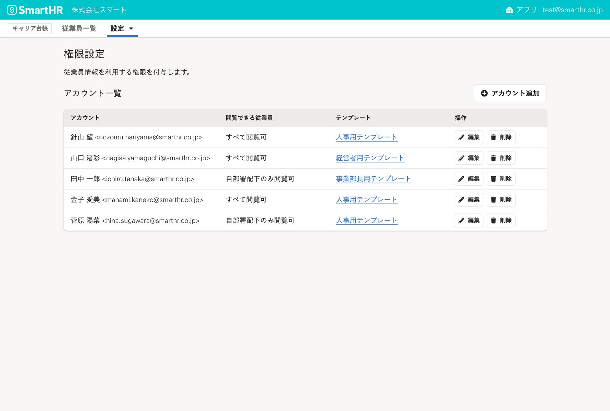 (4)アカウントごとに従業員情報の閲覧権限を付与