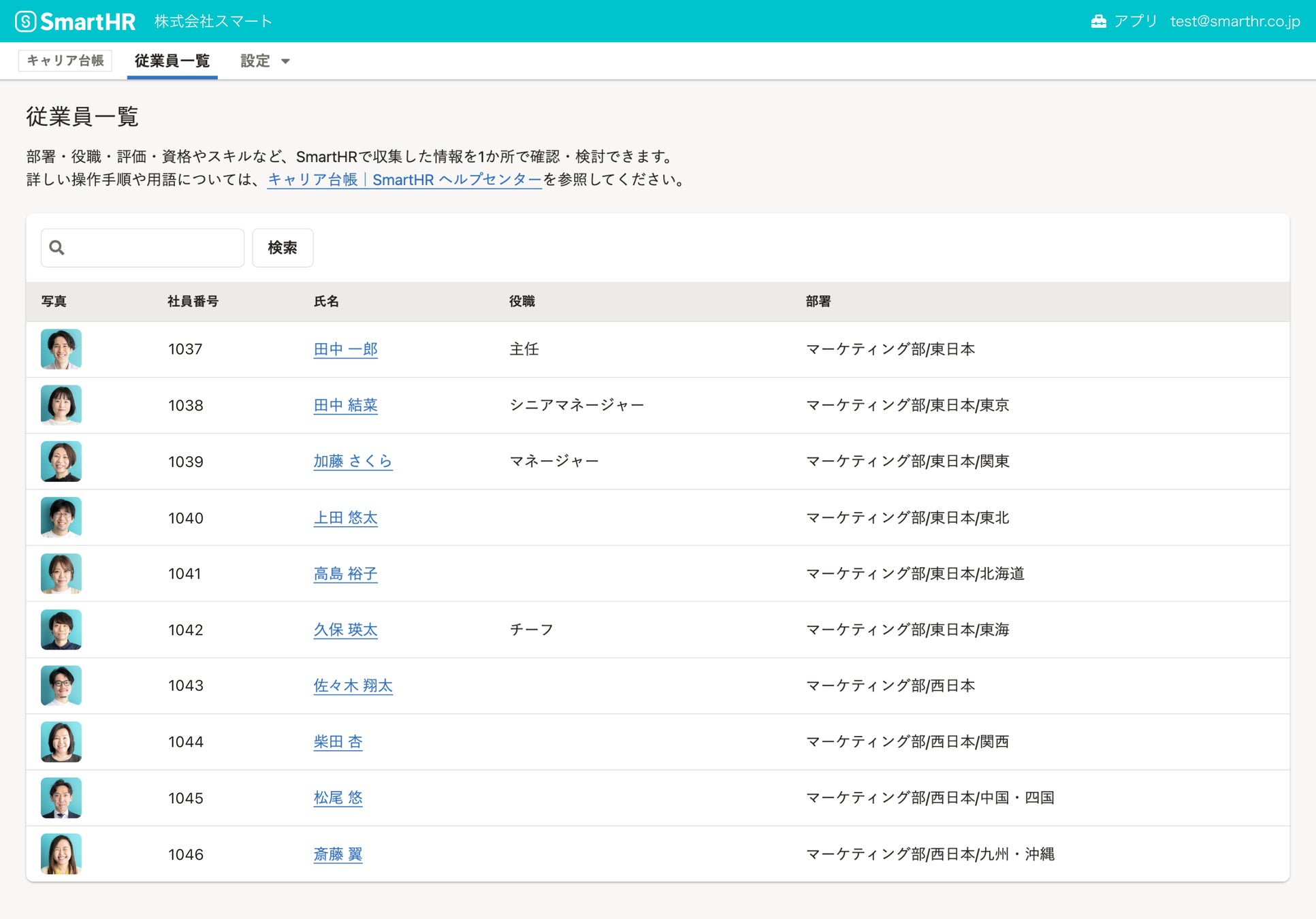 従業員のスキルや実績を経営資源として捉え、人材配置や人材開発などに活かすタレントマネジメントでは、最新の従業員情報を一元管理し客観的に確認できるデータ活用が重要な要素です。「キャリア台帳」は「SmartHR」に蓄積された従業員データを最大限活用しタレントマネジメント施策の立案や推進を支援するため、今後も権限設定や検索絞り込み機能、従業員サーベイなどとの連携などのアップデートを予定しています。