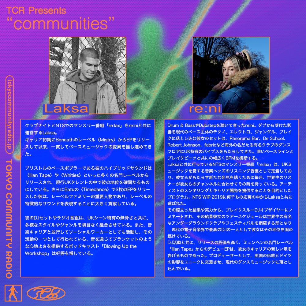 特典:同日深夜開催「Tokyo Community Radio Presents “communities” with re;lax」入場チケット