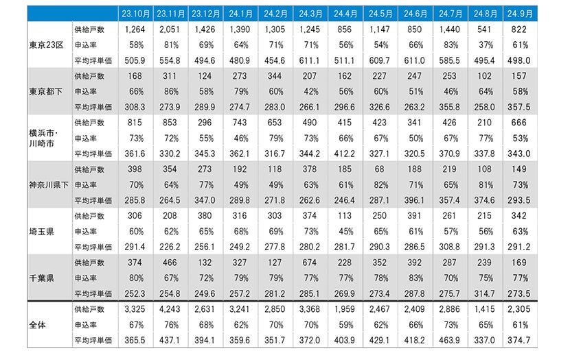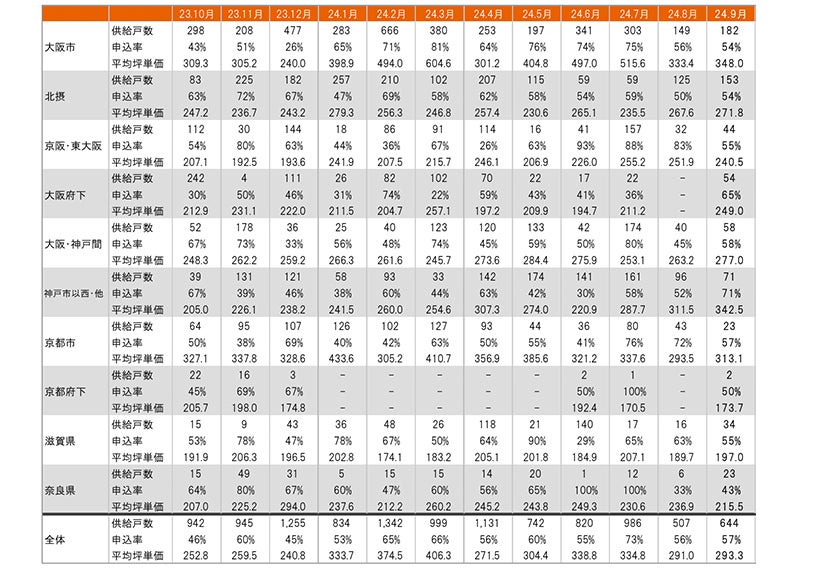月例新築マンション動向2024年12月号(2024年9月度分譲実績)