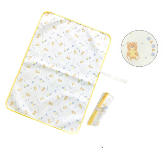 くるっとたたんで持ち運びに便利な両面防水加工のおむつ替えマット。食べこぼしやお風呂上り用のマットとしても活躍します!