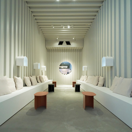 体験の最後には、アートミラーや「Finger Fitting Room」を設置した休憩エリアを提供。無料のオリジナルドリンクを楽しみながら、最後まで『匿名宝飾店』を体感いただけます。