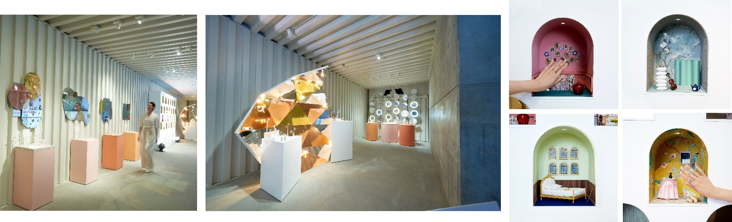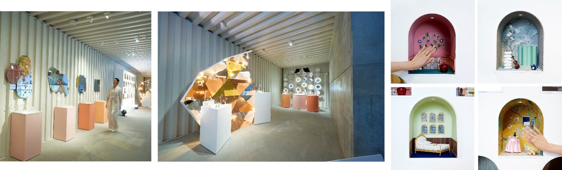 匿名宝飾店の8つのものづくりのこだわりごとに分けてジュエリーを展示。多彩なミラーに映して新しい試着体験が楽しめます。また、9つの異なった世界観の、指のための試着室「Finger Fitting Room」では手元の撮影も楽しむことができます。