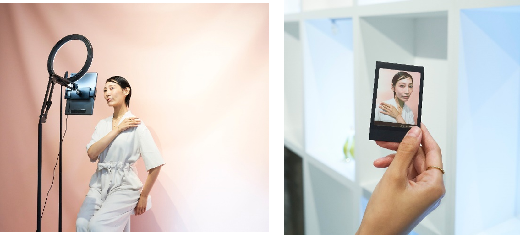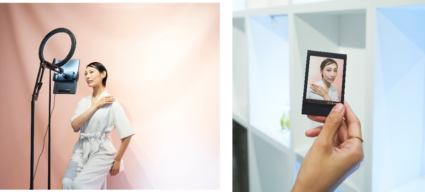 購入にかかわらず、「Jewelry Buffett」で選んだ自分のお気に入りのジュエリーと一緒にインスタフォトの撮影が可能。オリジナルのフレームをあしらった写真をお持ち帰りいただけます。