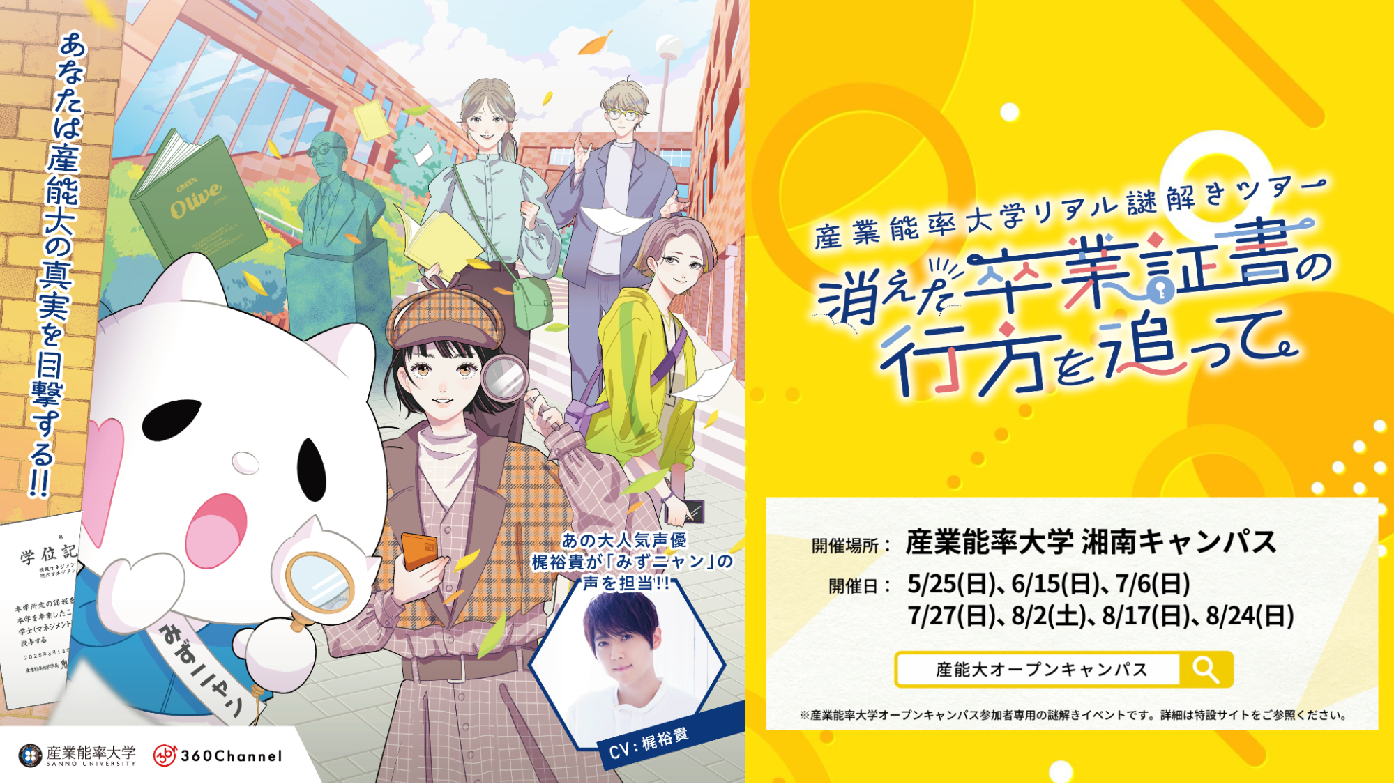 ~梶裕貴さん、天野聡美さんなど豪華声優陣とのコラボが実現!大学内で発生した難事件を解決する、これまでにないオープンキャンパスイベントがスタート!~