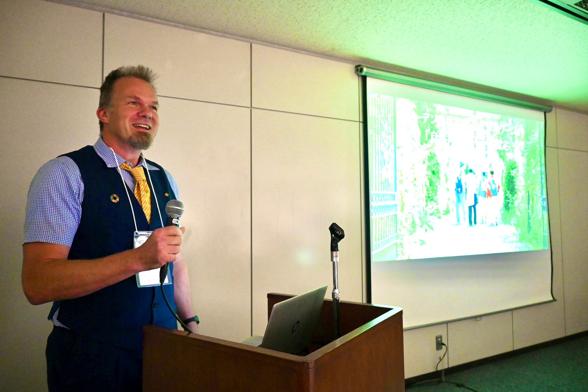 2025年9月30日に開催された「令和7年度 自然共生サイト認定式」では、日本経済大学(福岡県太宰府市、学長:都築 明寿香)で生物学・環境科学を担当し、ガーデンでの生物多様性調査や管理にも携わるデジレロイ・バルテレミ講師が登壇。ガーデンに生息する希少種や、ガーデンを活用した教育活動についてプレゼンテーションを行いました。