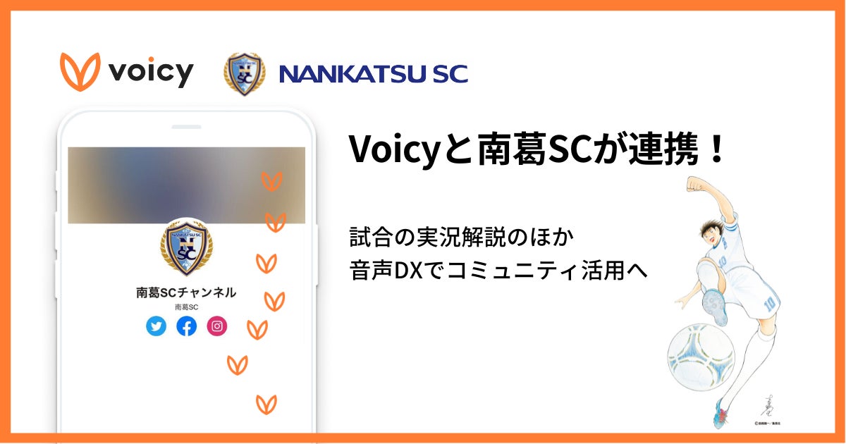 株式会社Voicyは、関東サッカーリーグ1部所属のサッカークラブ「南葛SC」と連携し、運営する音声プラットフォームVoicyを活用したサッカークラブの音声DXに取り組みます。試合の実況解説生放送のみならず、テクノロジーを活用したクラブにおける新しいコミュニケーションのかたちを提案していきます。