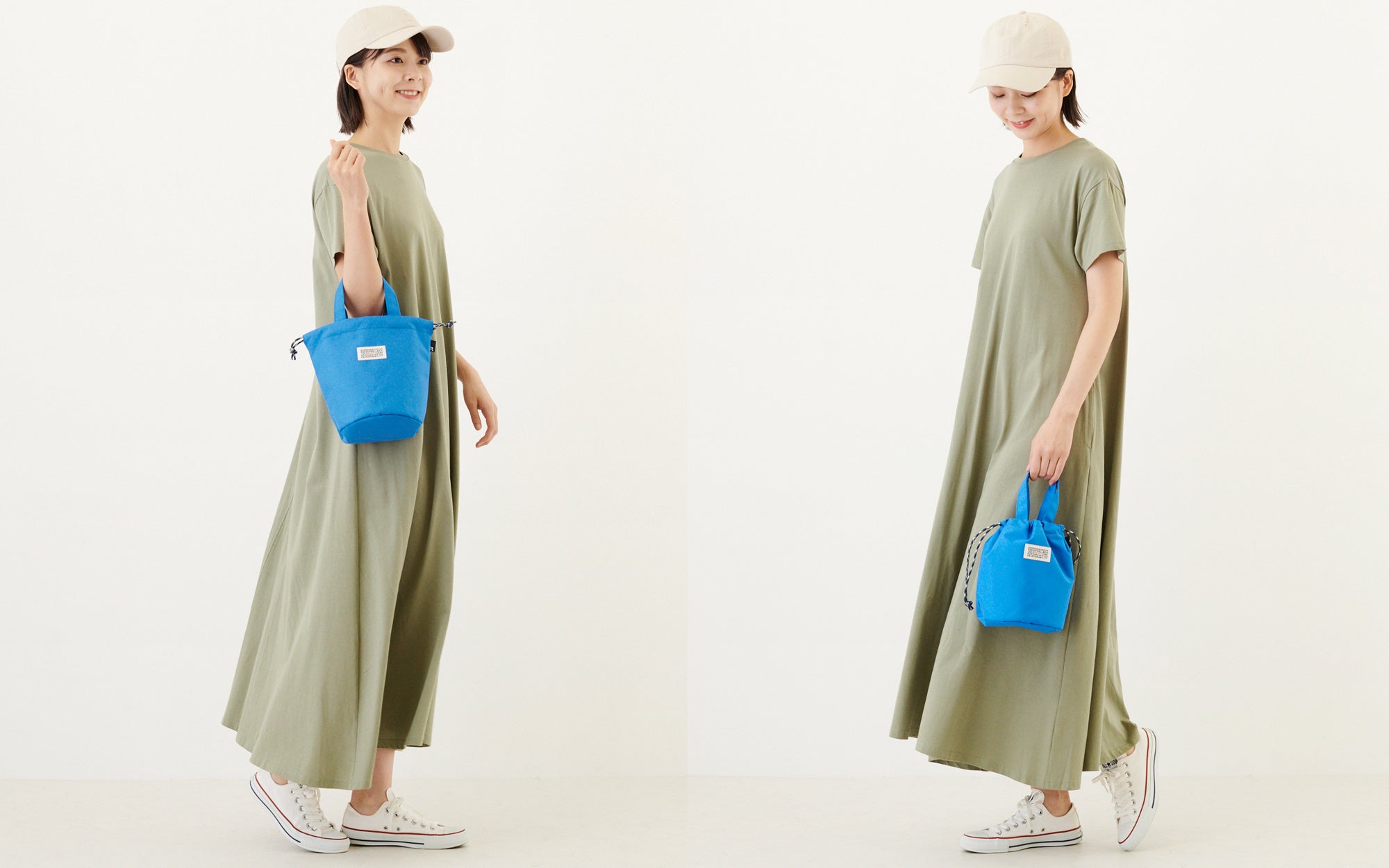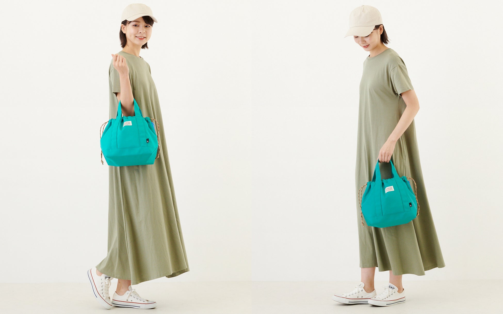 幅広マチで収納力たっぷり。大きめ巾着タイプ「デリ」