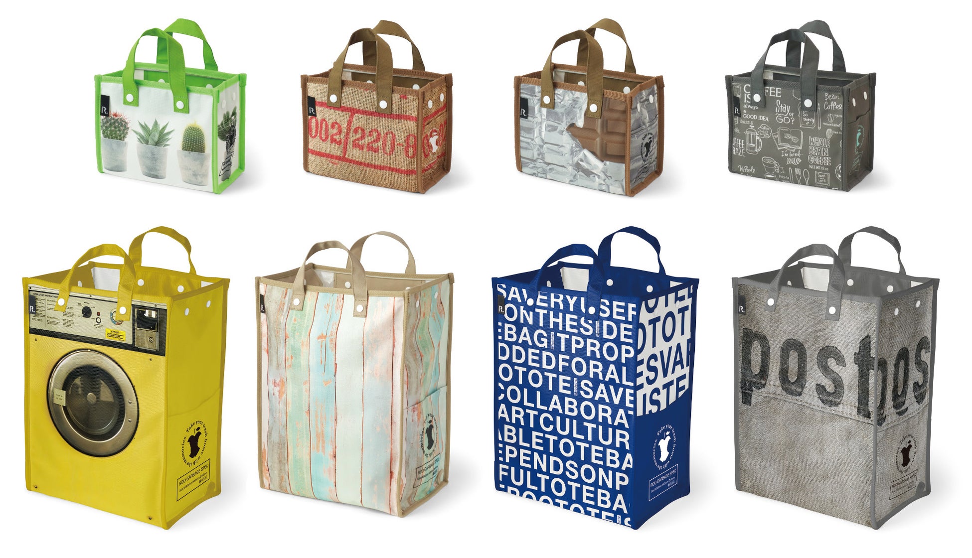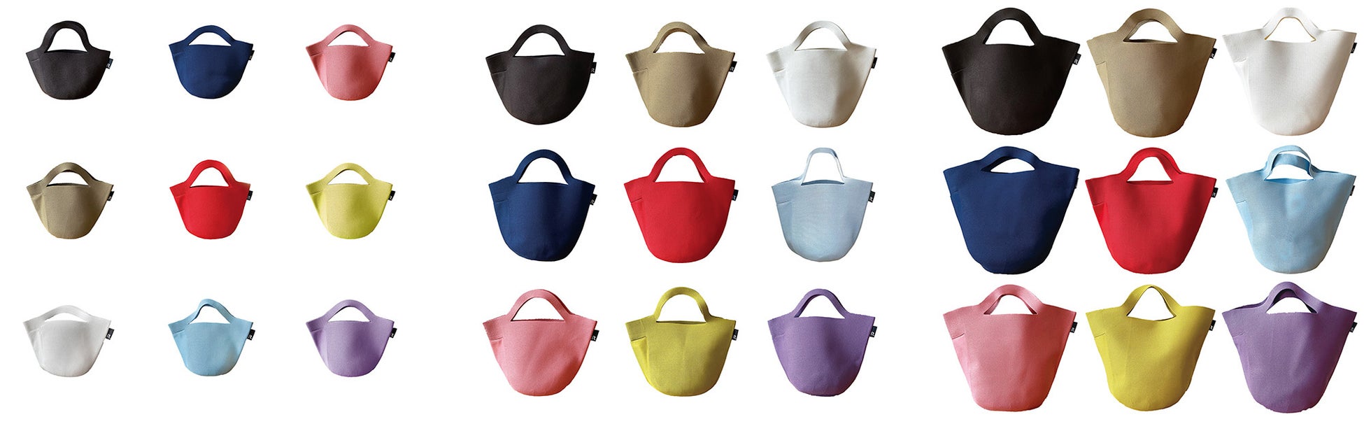 RGB.RPET Poly 30-A 3,300円(9676 01 Laundry、02 Color plate2、03 A.Soup、04 Post)サイズ:W30×H40×D20cm 持ち手長さ:22.5cm 素材:ポリエステル(リサイクル)、ドットボタン 芯材:PE ポケット:外側1箇所 ペグループ付 付属プレート付 特許取得済 ※発売中