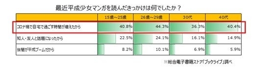 【2】平成少女マンガを読むきっかけは「コロナ禍で自宅で過ごす時間が増えたから」が全世代で1位