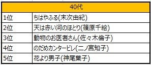 「最近読んだ平成少女マンガを教えてください。」という質問に対しての回答を、各年代ごとのランキングで紹介します。