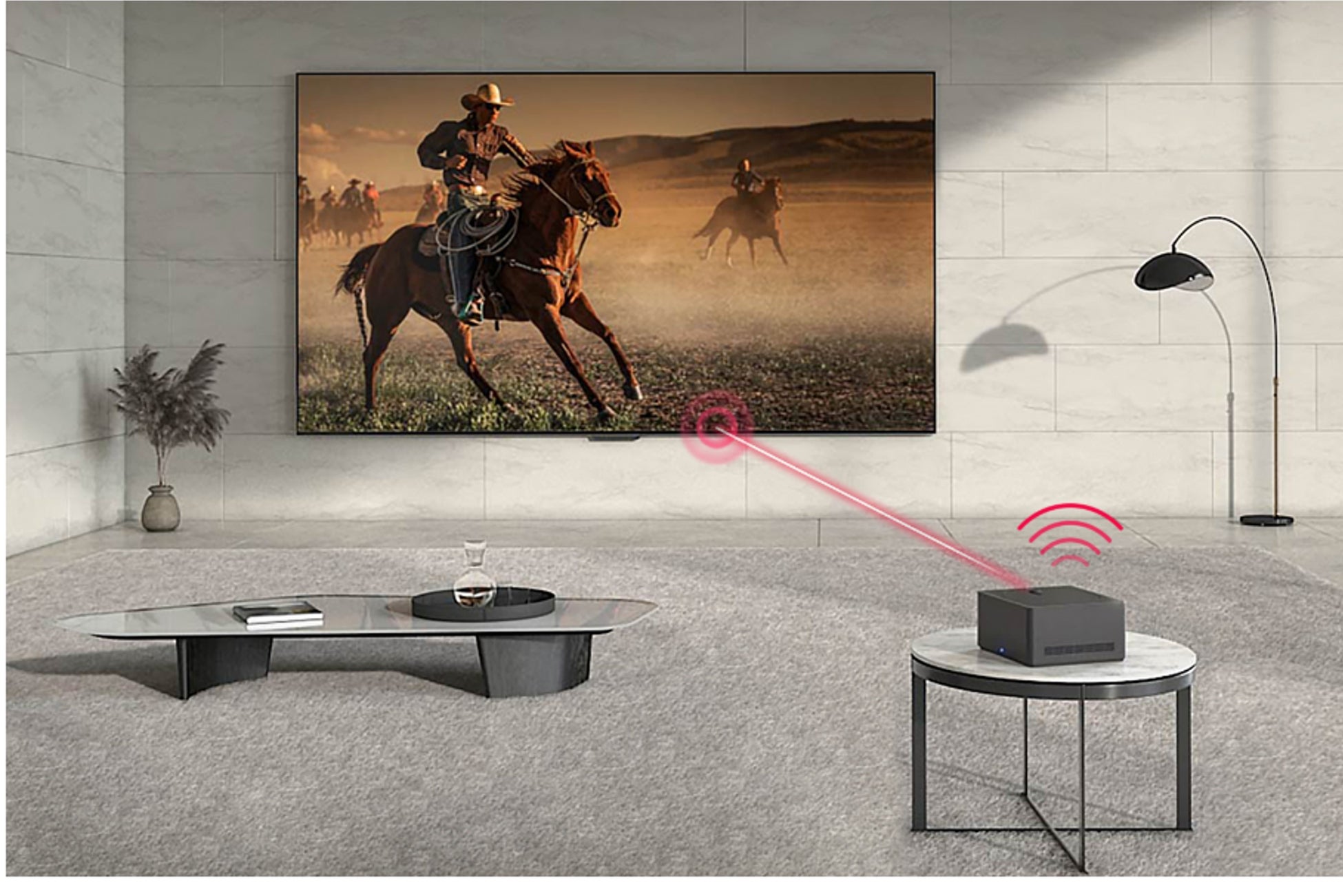 この度発売する「OLED M3」は、端子やチューナーのある「ZeroConnect Box(ゼロコネクト・ボックス」から無線接続することで、コードを気にせずインテリアを最優先した設置が可能な有機ELテレビです。4K120Hzの膨⼤な映像・⾳声データを60GHz 帯でワイヤレス転送し、60GHz帯は⾼速であるだけでなく、一般的なWi-Fiと帯域が異なるため、混線による通信障害※の⼼配もなく、ディスプレイと「ZeroConnect Box」は最⼤10mの距離まで離せるので、配置の⾃由度が⾼まります。
