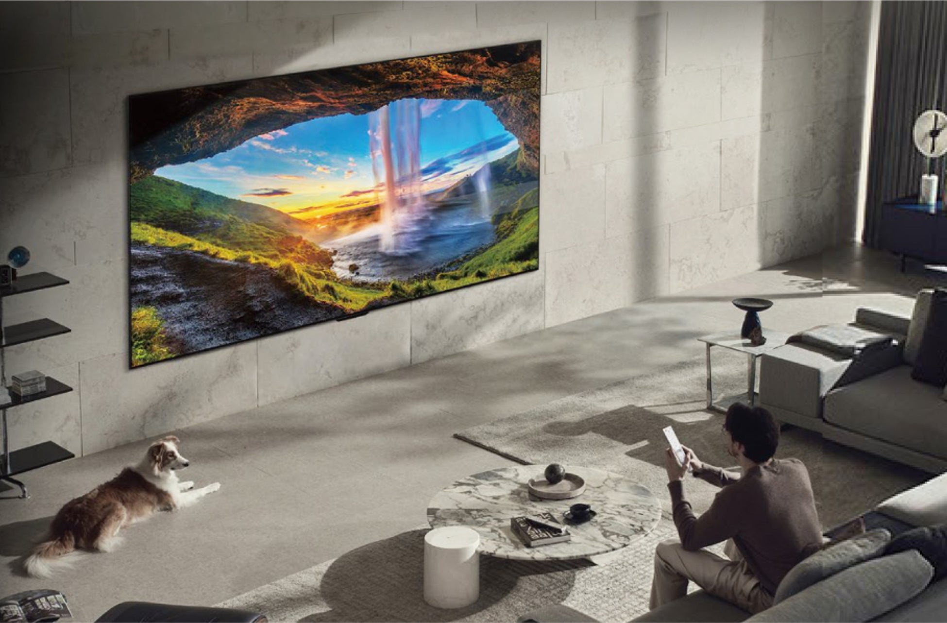 壁掛けTVがさらに進化。端子やチューナーのあるZeroConnect Boxから無線接続することで、コードを気にせずインテリアを最優先した設置が可能です。4K120Hzで画質や音質にもこだわりました。