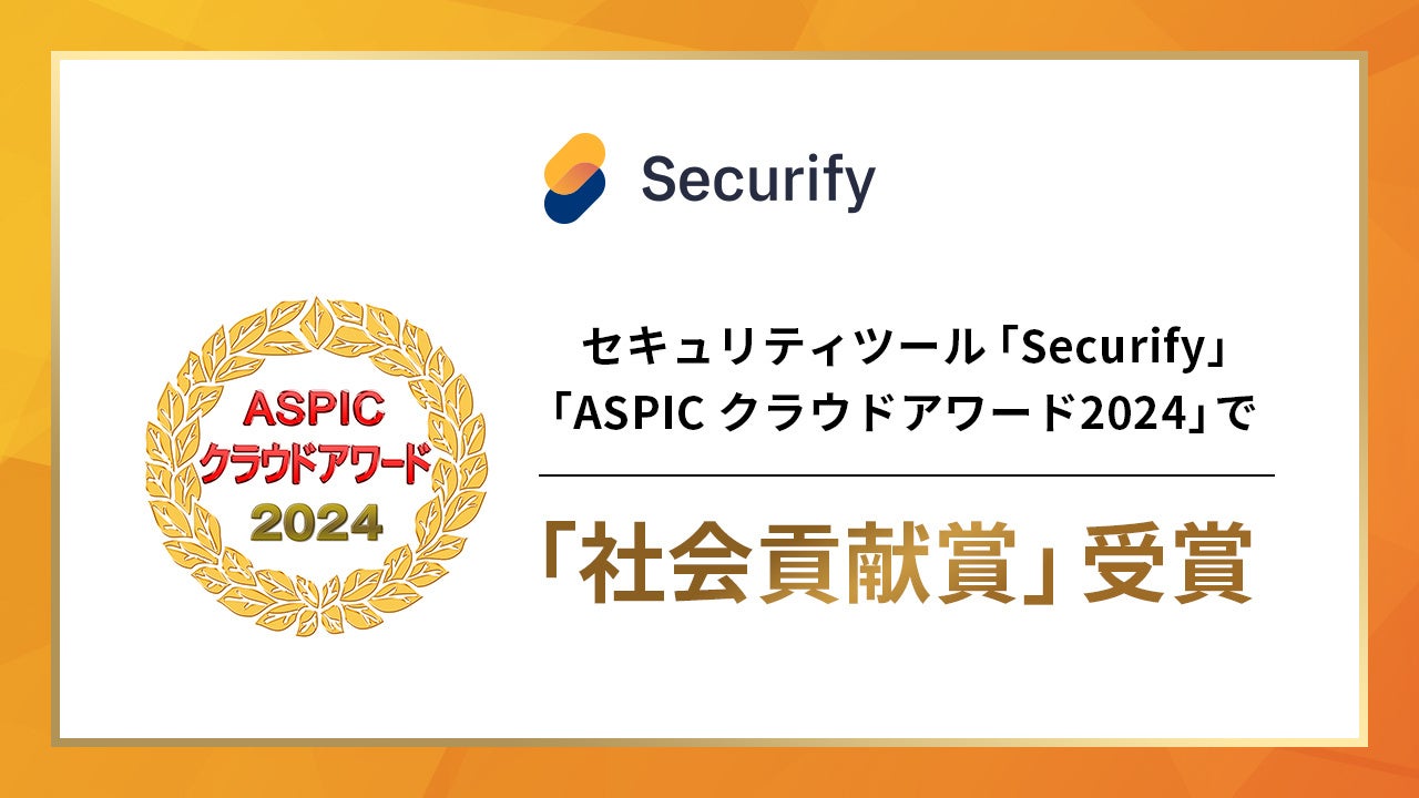 株式会社スリーシェイク(本社:東京都新宿区、代表取締役社長:吉田 拓真、以下スリーシェイク)が提供する、セキュリティツール「 Securify(セキュリファイ)」は、一般社団法人日本クラウド産業協会(略称:ASPIC、東京都品川区西五反田、会長:河合 輝欣、以下ASPIC)が2024年11月20日に発表した「ASPICクラウドアワード2024」において、支援業務系ASP・SaaS部門の「社会貢献賞」を受賞したことをお知らせします。