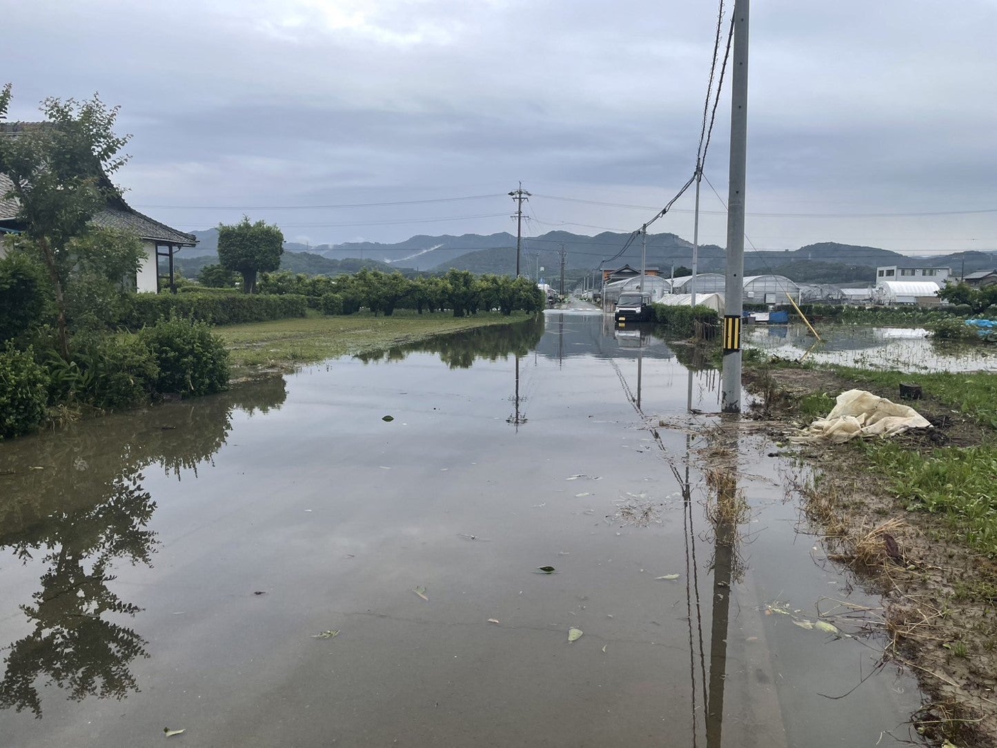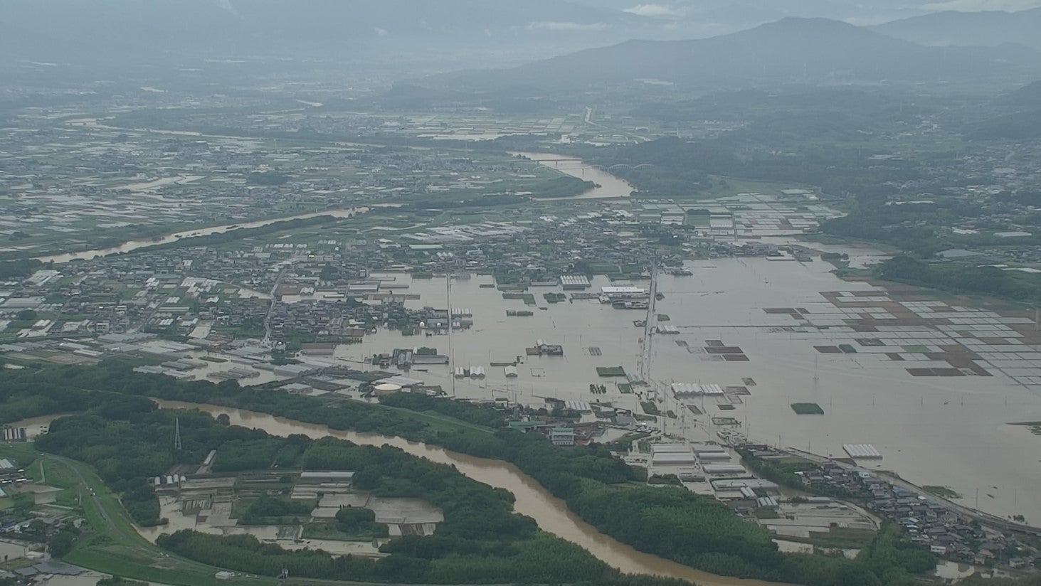 特産品の食用菊や露地野菜などが水没、果樹も果実の擦れ、落果による深刻な被害を受けており、6⽉9⽇までの判明分で農作物の被害額は、4億円を超えている状況です。