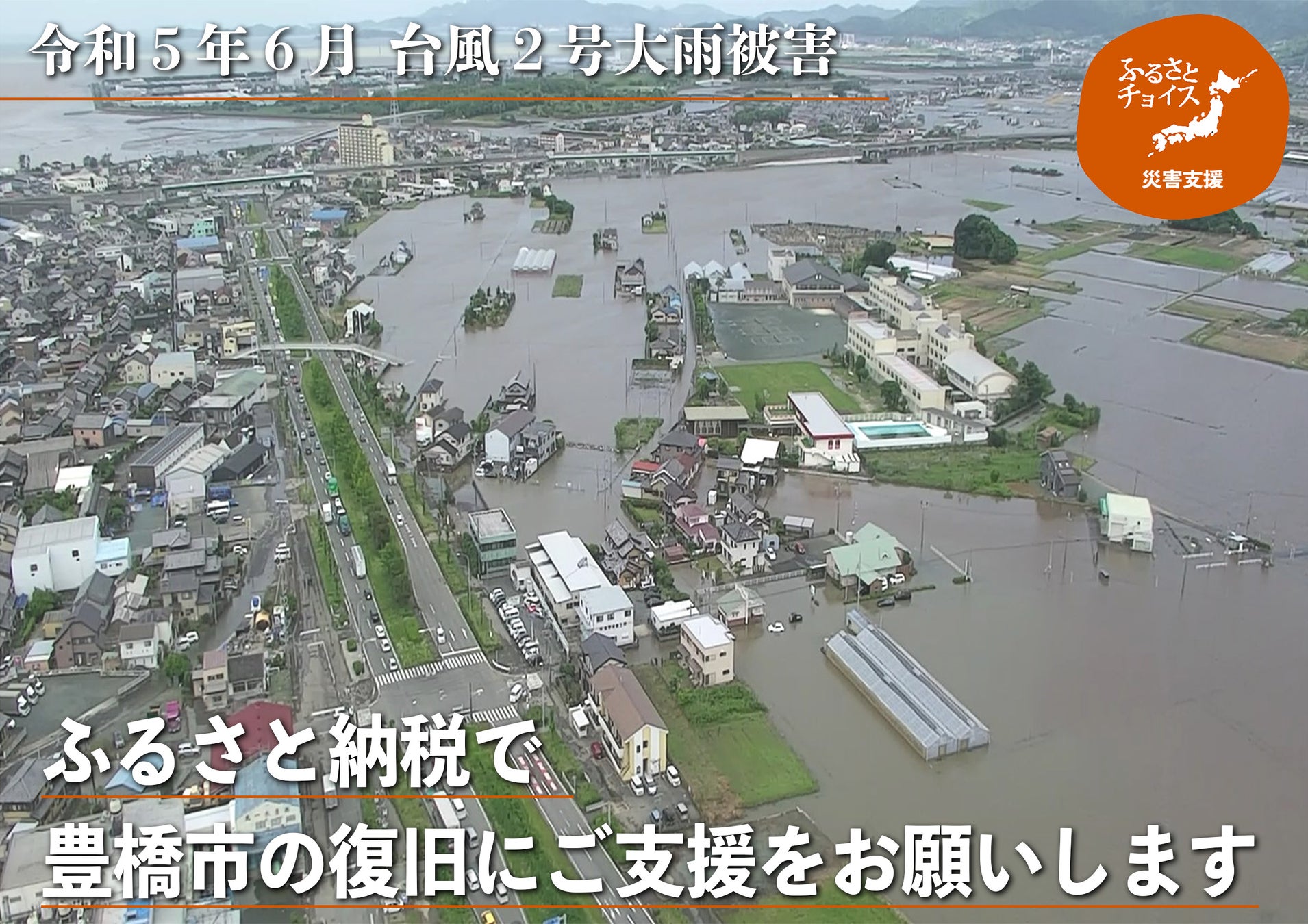 現在、市全体で復旧・復興に全力で取り組んでおりますが、1日も早い復旧・復興のため、豊橋市ではただいま大雨災害の復興支援としてふるさと納税での寄附金を受け付けています。