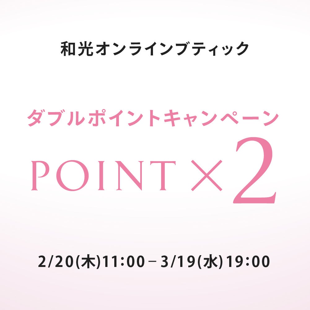 2月20日(木)11:00~3月19日(水)19:00の期間限定で、オンラインブティックでのお買物にて、通常の2倍(お買上げ金額の2%)のポイントを進呈いたします。
