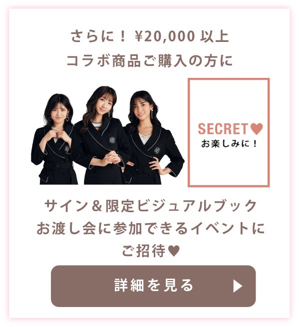 コラボ商品¥20,000(税込)以上ご購入の方に、[サイン&ビジュアルブックお渡し会]にご招待。**イベント参加チケットは、公式オンラインストア・ルミネエスト新宿店でご購入された方のみとなります