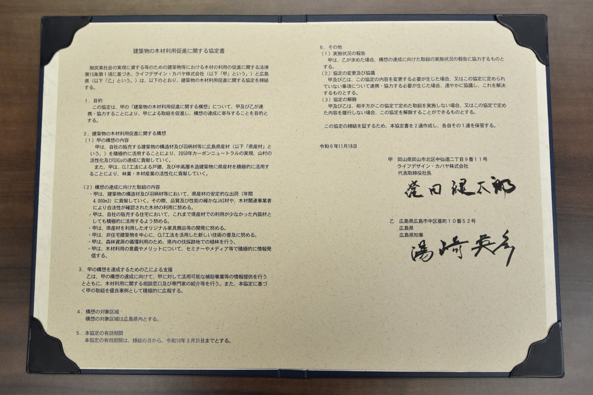 ライフデザイン・カバヤが広島県と『建築物の木材利用促進に関する協定』を締結
