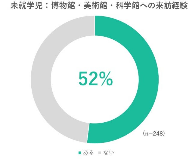 - 博物館・美術館・科学館への来訪経験は未就学児は52%、小学生は82%