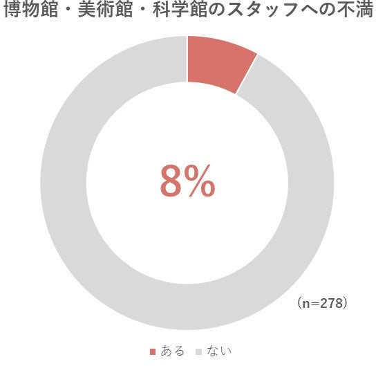 - 博物館・美術館・科学館のスタッフに対して不満をもったことがある親はわずか8%。不満の内容は「子供に対して冷たい、無愛想」