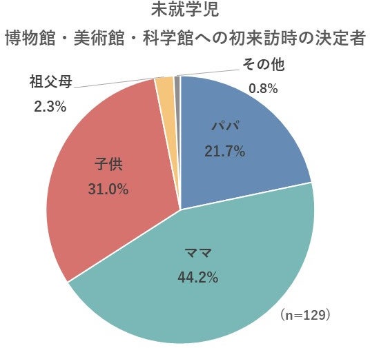 - 初めて行く博物館・美術館・科学館の決定者は未就学児・小学生ともに「ママ」