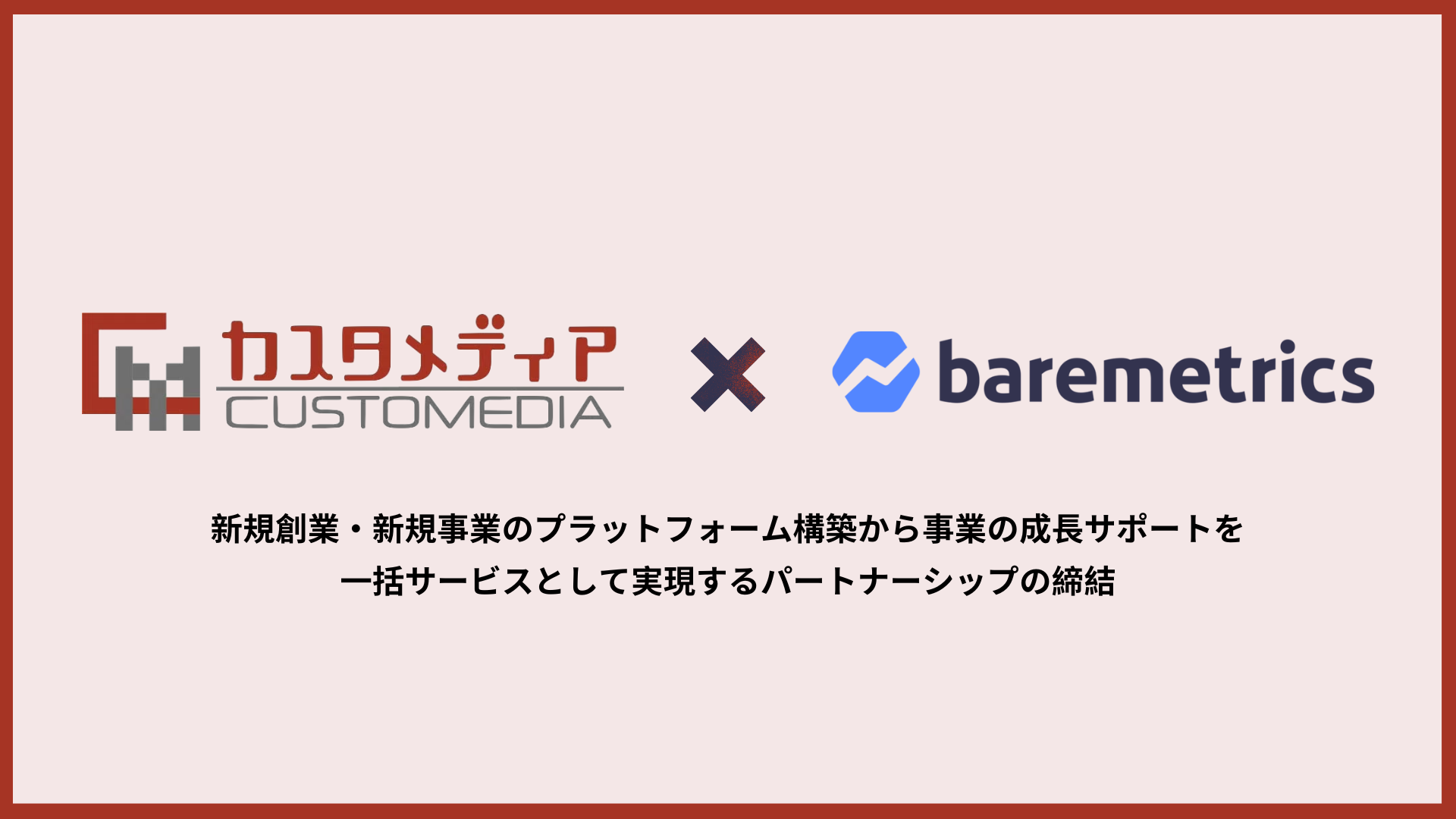 この度、会員制サービス構築エンジンを提供するカスタメディア社とパートナー契約を締結致しました。この締結によりスタートアップへの支援を拡充することで、Baremetricsそしてカスタメディア両社にとって、サービスの価値が向上されることに期待しております。