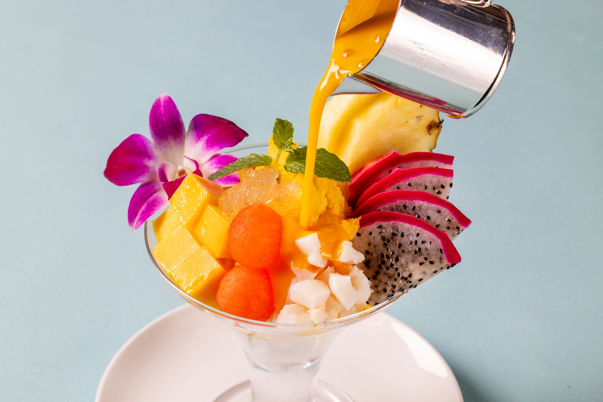 6種類のトロピカルフルーツとツバメの巣をあしらった美容効果も期待できるふわふわ食感のかき氷